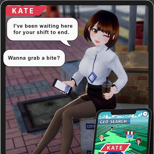 Isekano is a Pokémon Go-like augmented reality (AR) game where you walk around town to find and collect virtual women in your area. After meeting up with them in the app, you then take them on virtual dates to real locations in your neighborhood to further their storylines.
